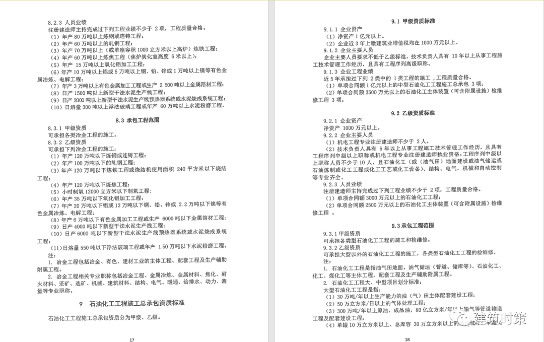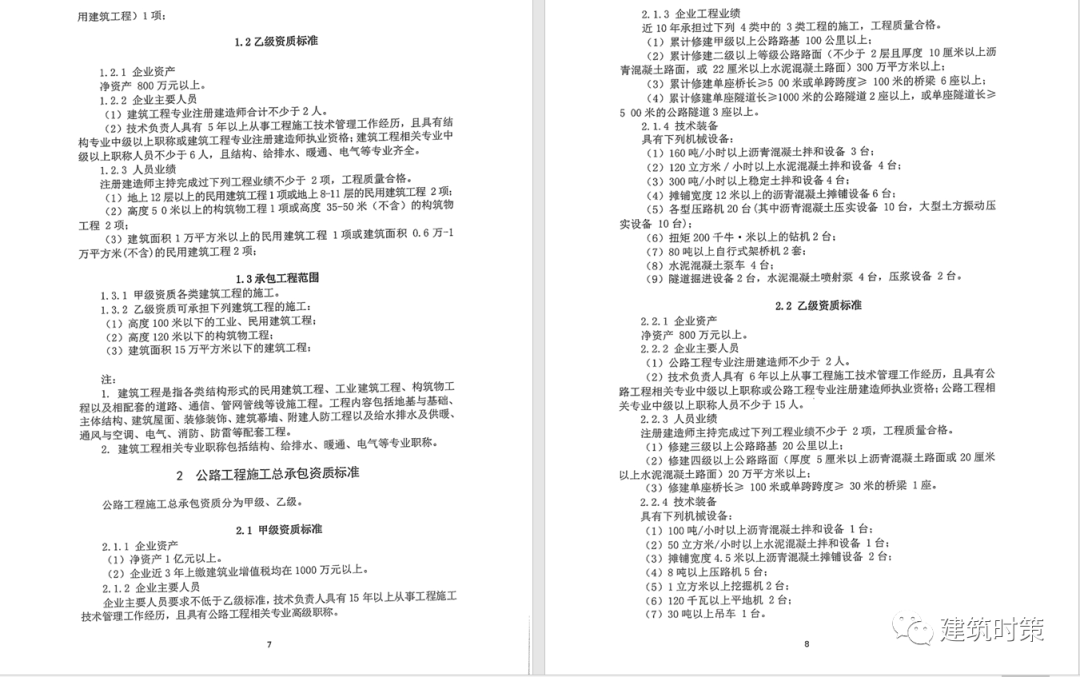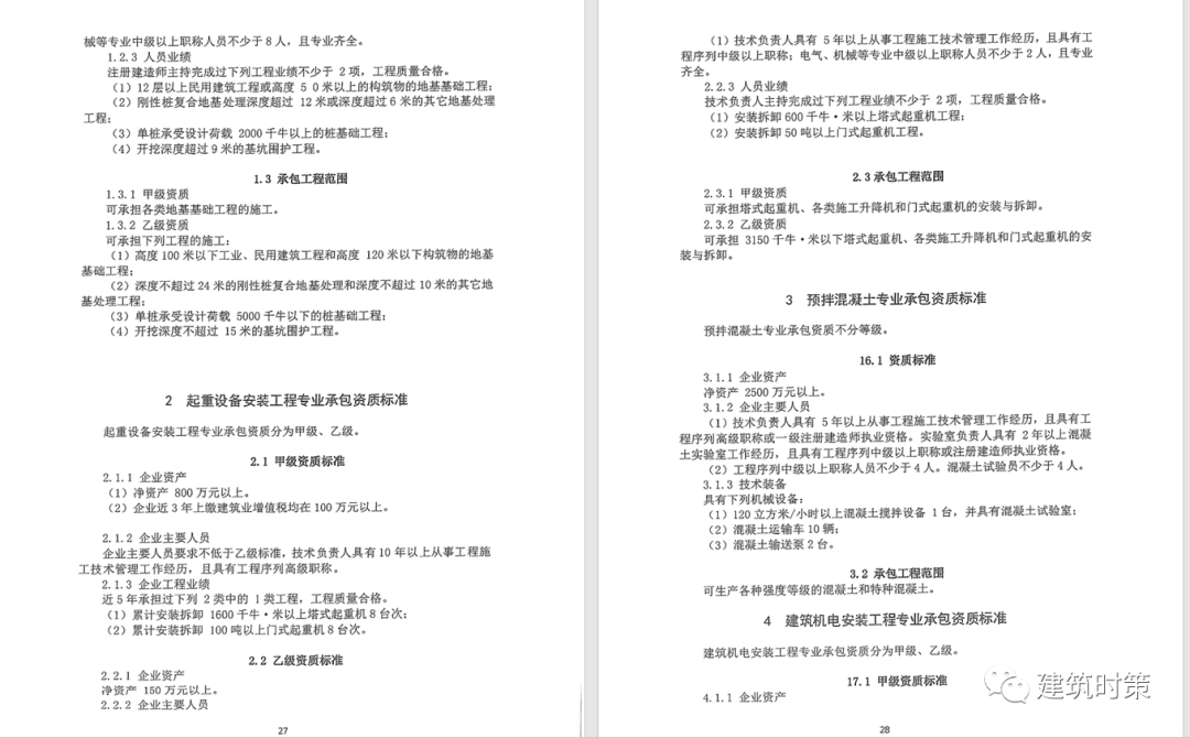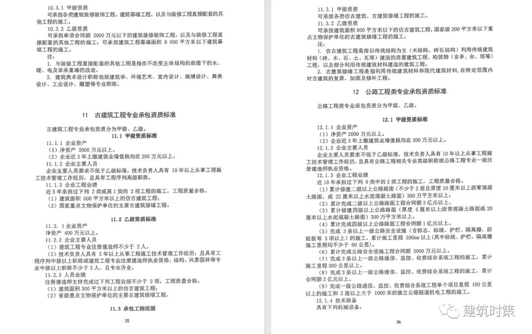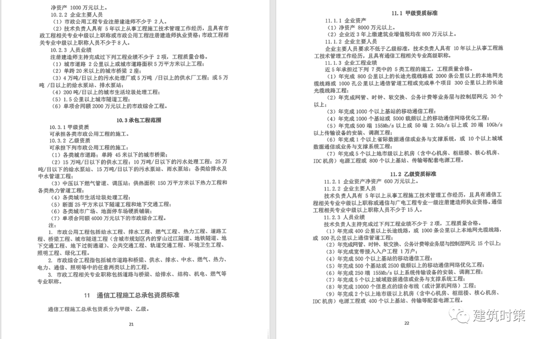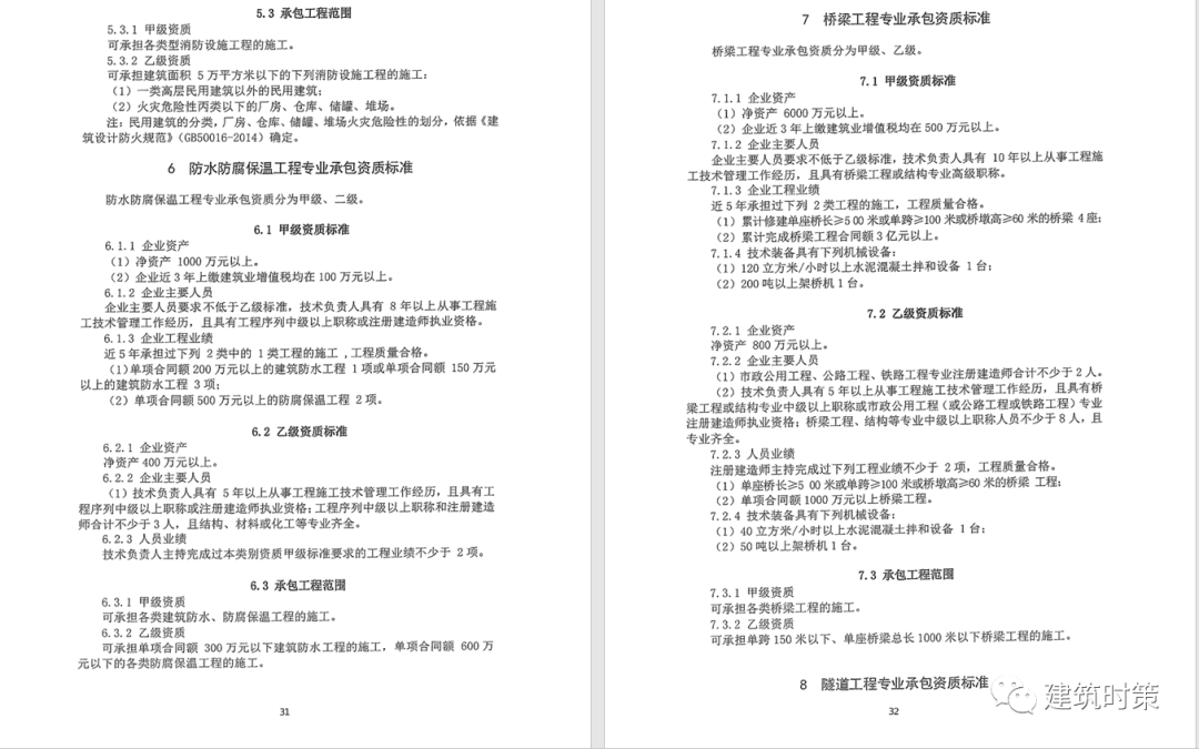 施工資質:甲級資質在本類別內承攬業務規模不受限制,原一級資質調整為甲級資質,其他等級資質合并為乙級資質。