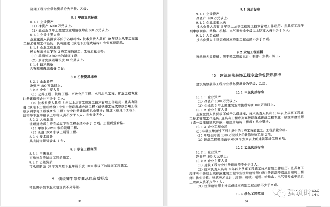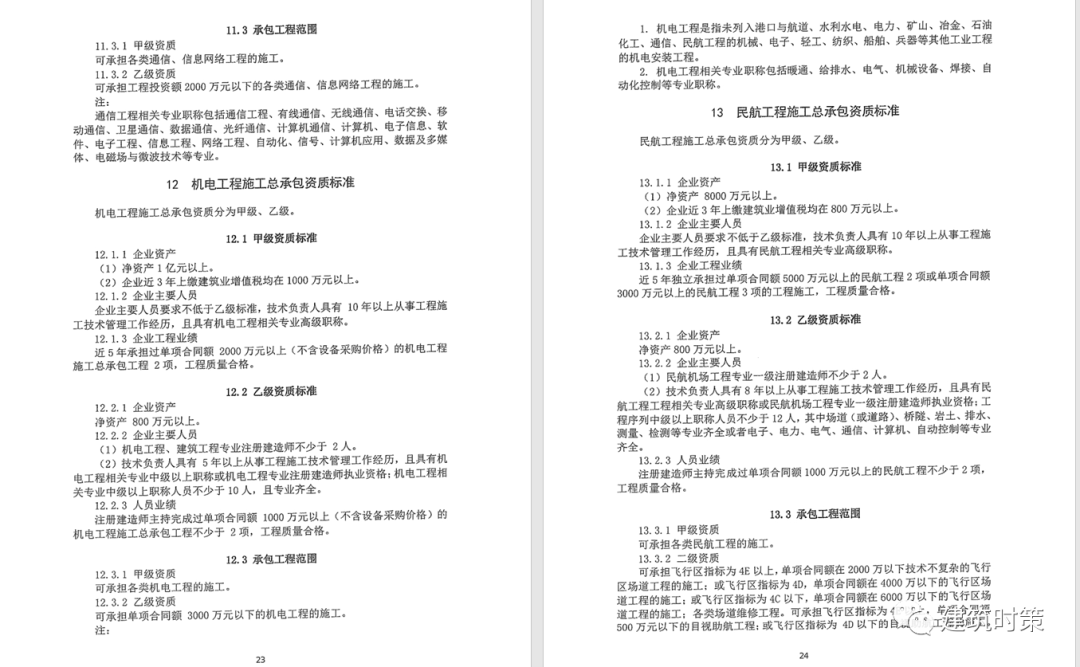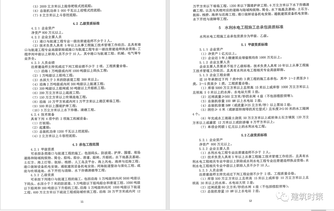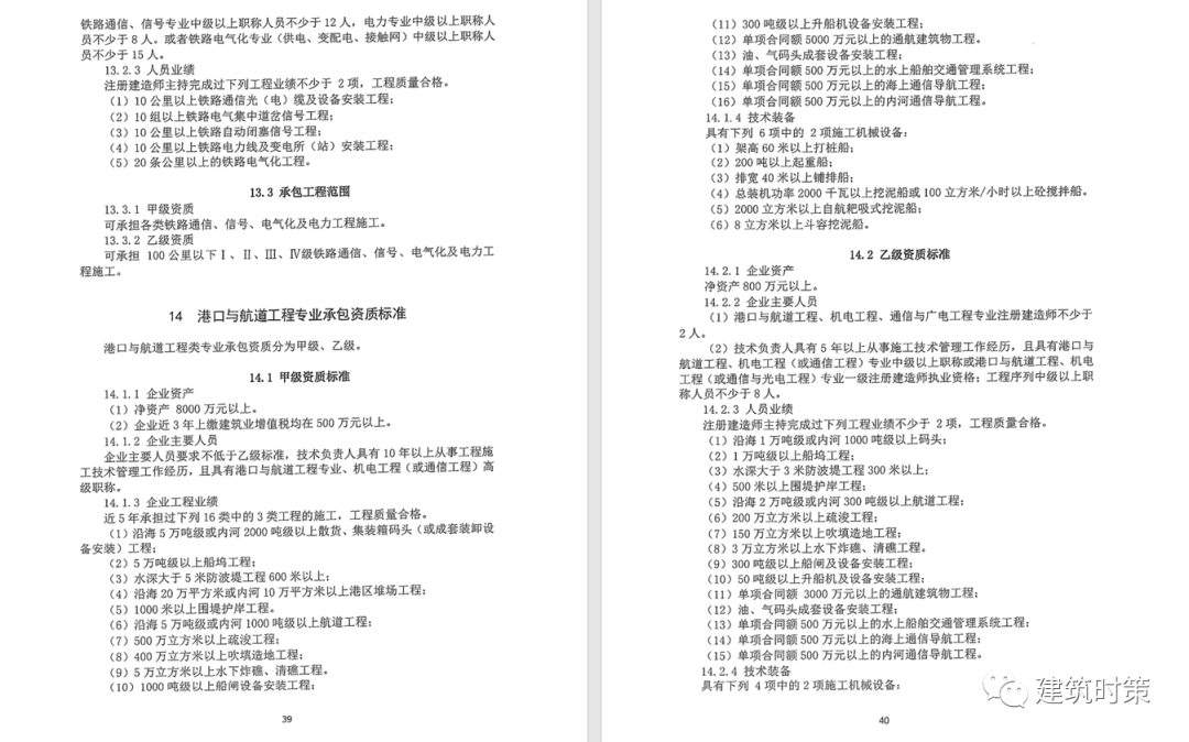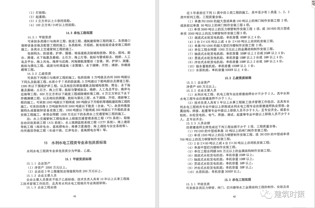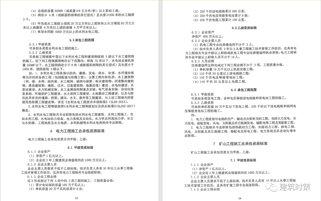 施工資質:甲級資質在本類別內承攬業務規模不受限制,原一級資質調整為甲級資質,其他等級資質合并為乙級資質。