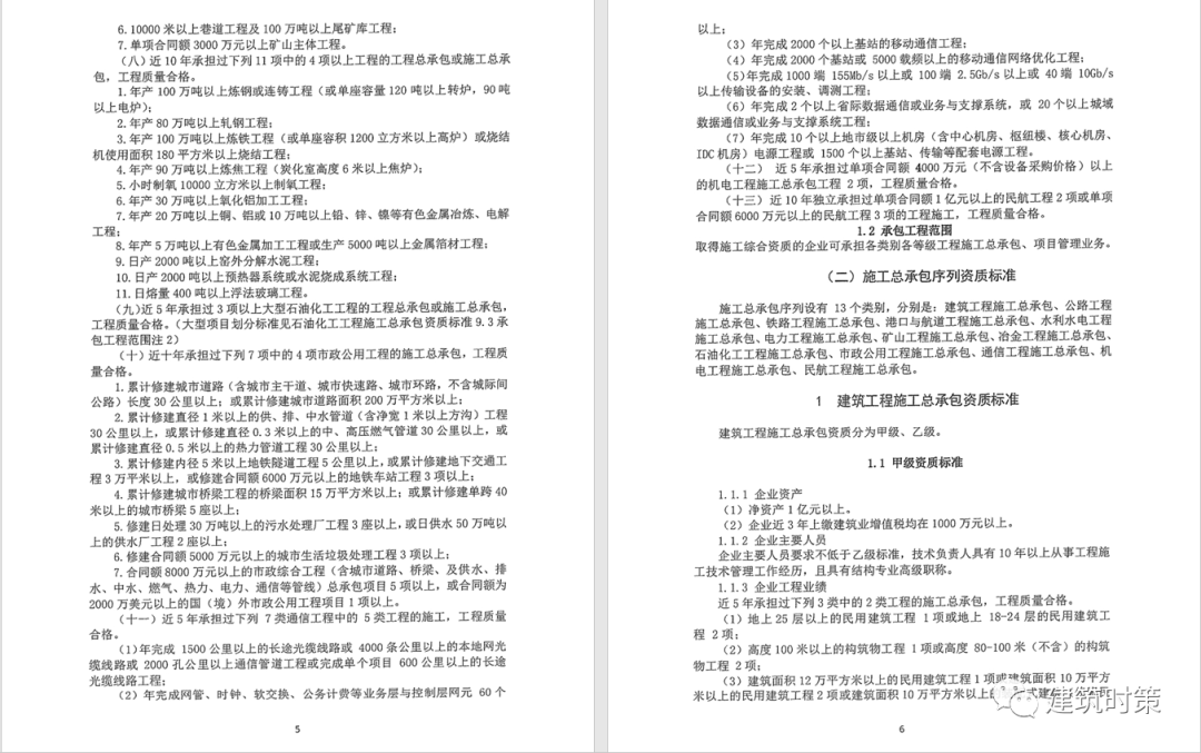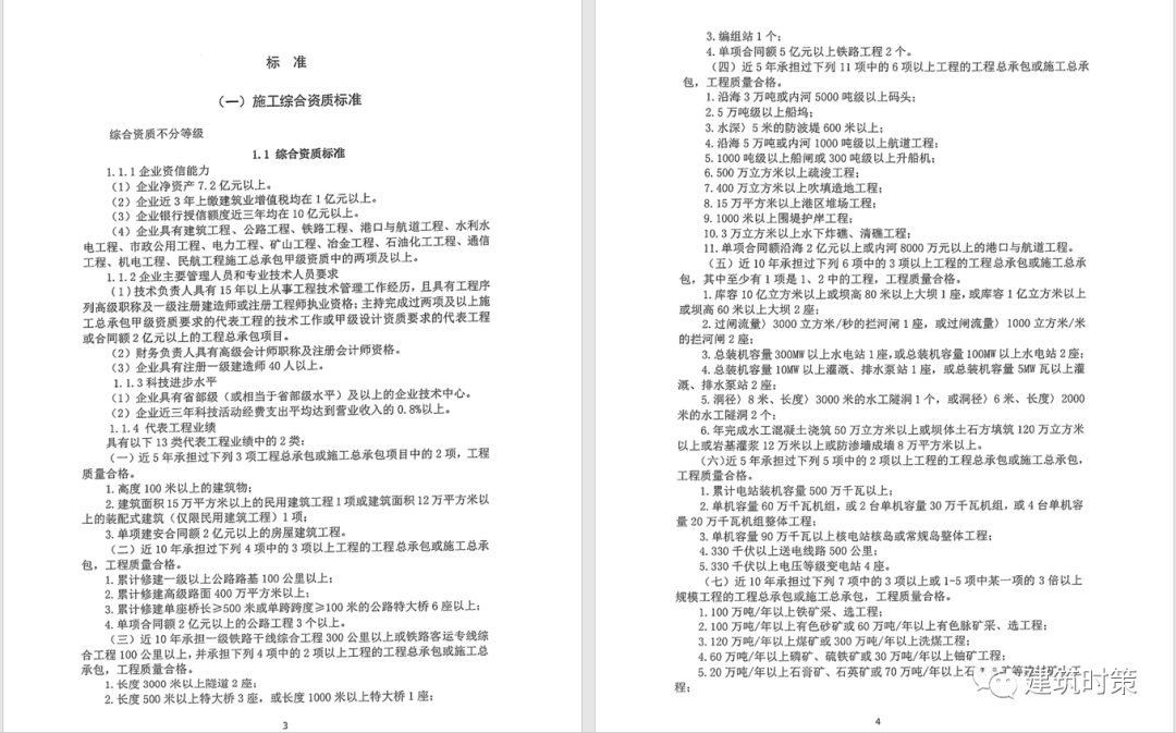 一、建筑工程施工總承包資質標準