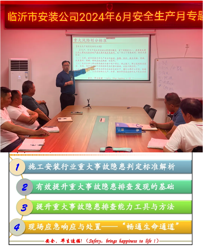根據國家有關要求及我公司的實際情況,也為了更好的響應2024年的“人人講安全,個個會應急,暢通生命通道”安全月主題,公司首先組織全員進行了一個多月的公司級安全教育培訓。